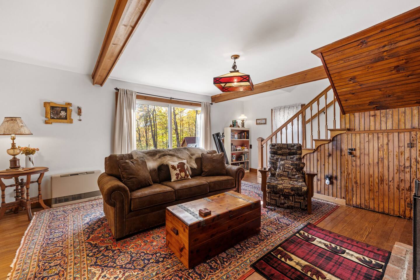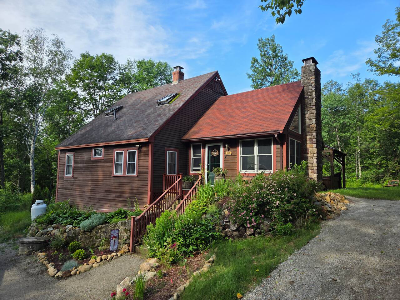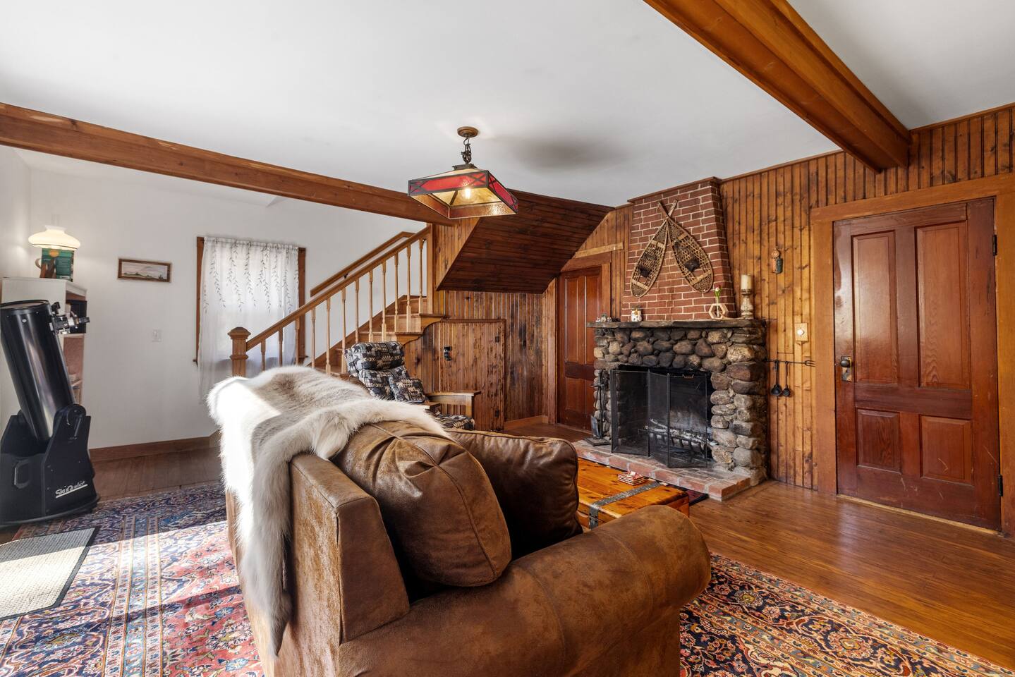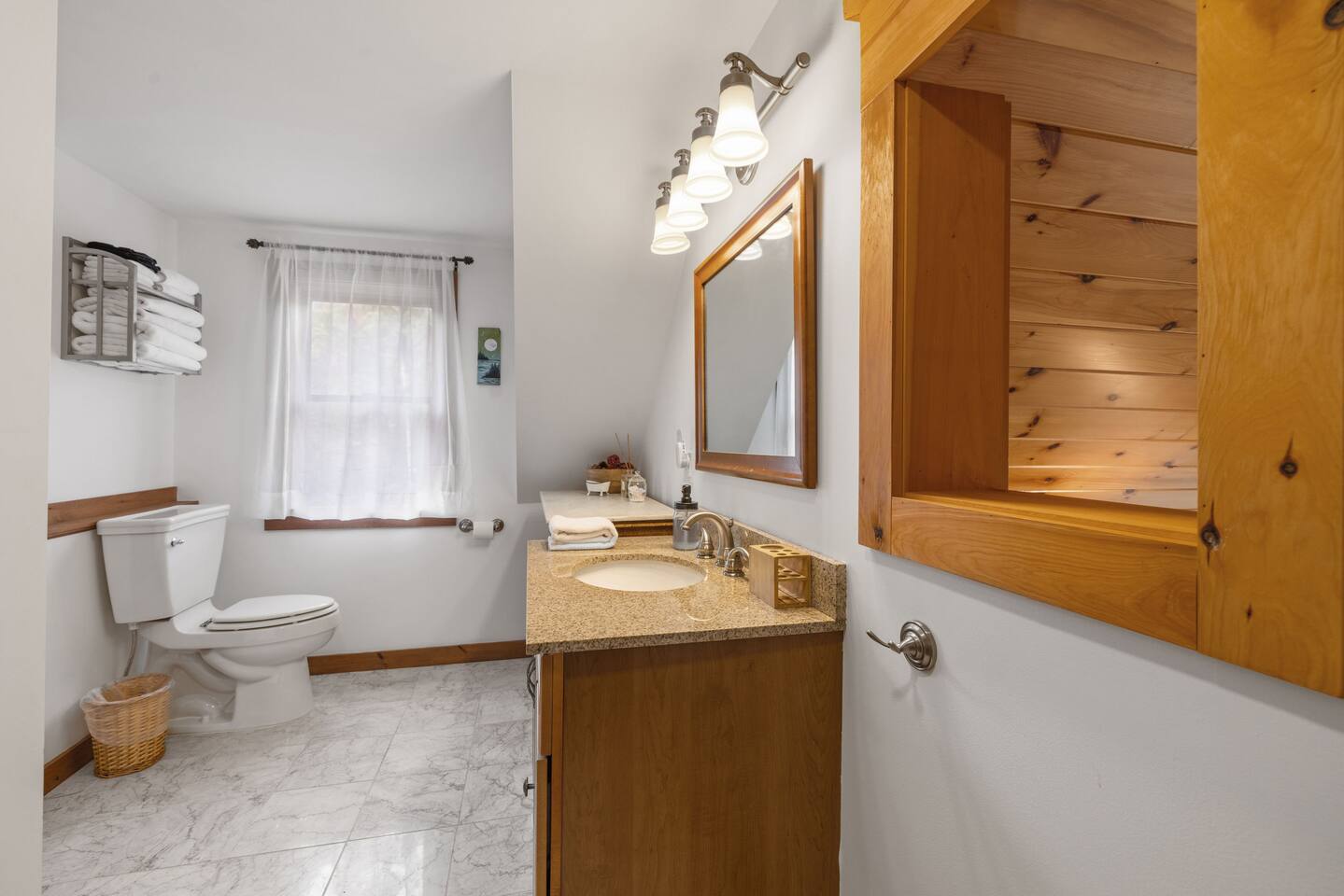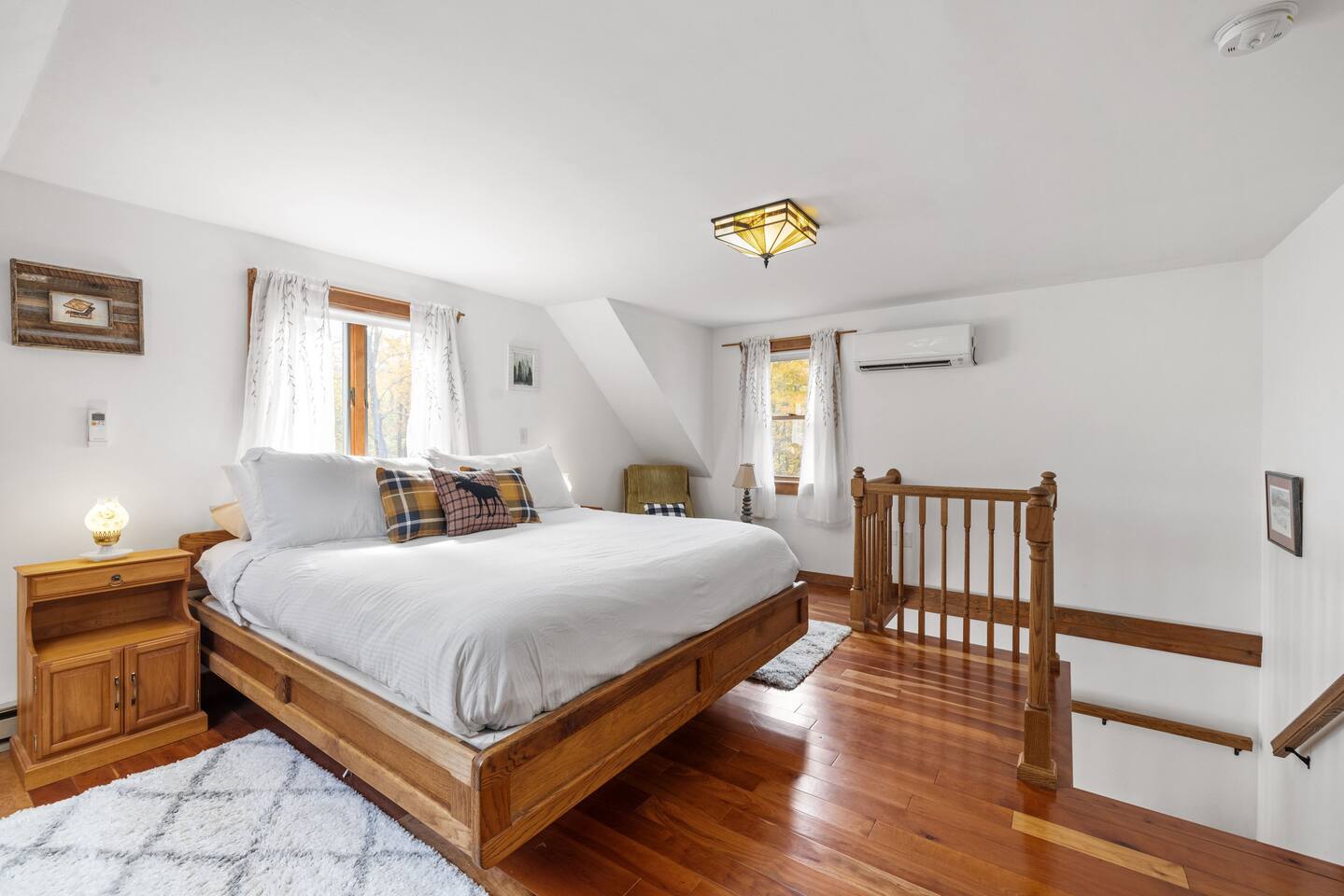 Discover a charming cottage nestled in a picturesque woodland with views of Black Mountain. The inviting vaulted room, adorned with a wood stove, serves as a cozy gathering spot. The pavilion and hot tub create a tranquil oasis, while the deck provides a serene escape with vistas of Black Mountain and the soothing sounds of babbling brooks. The master bedroom, a secluded loft, boasts its own full bath. Enjoy home-cooked meals in the fully equipped kitchen, perfect for dining with loved ones.