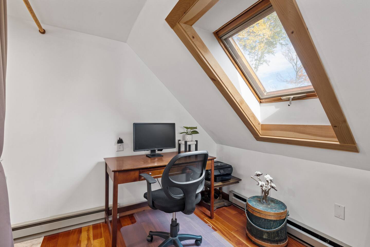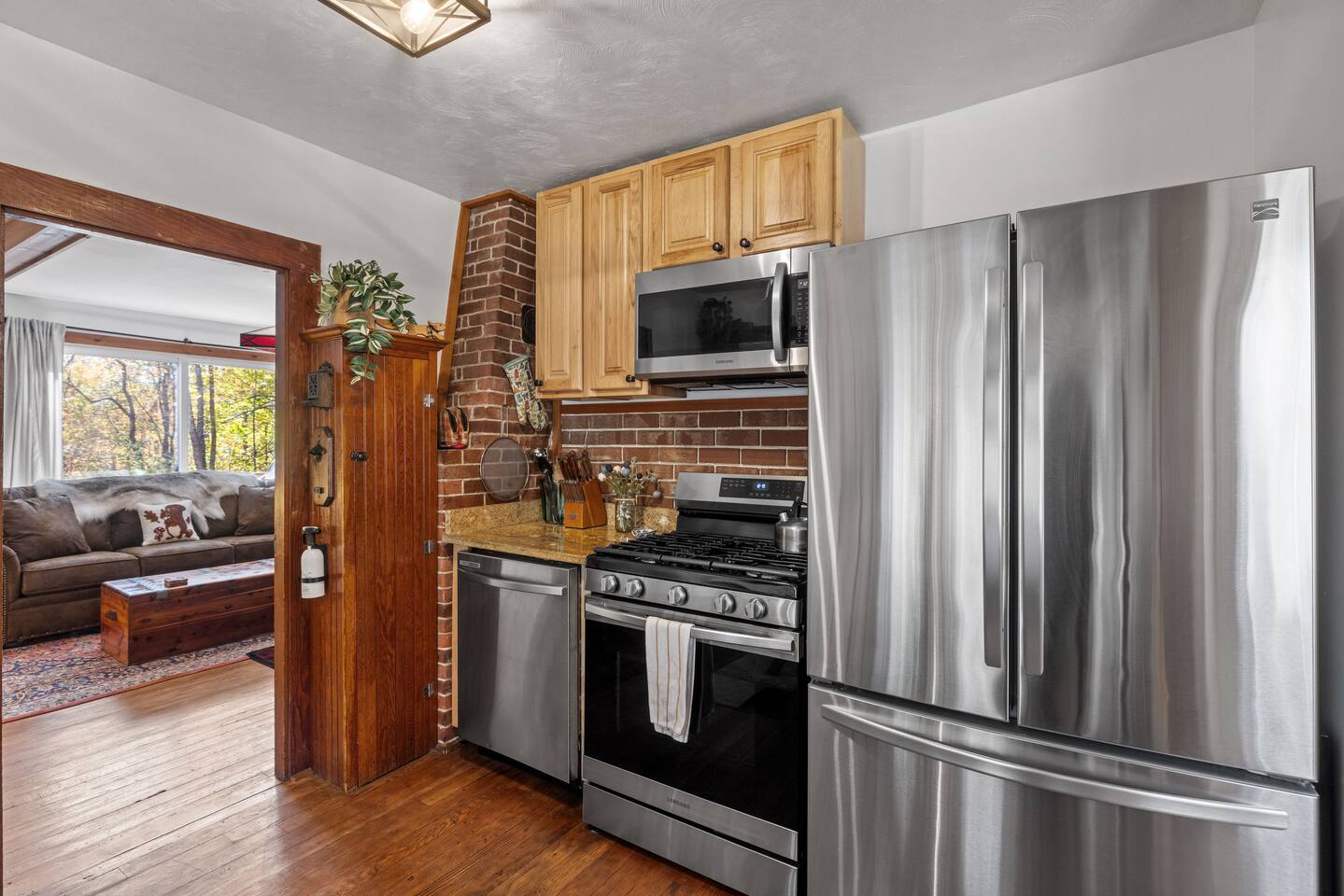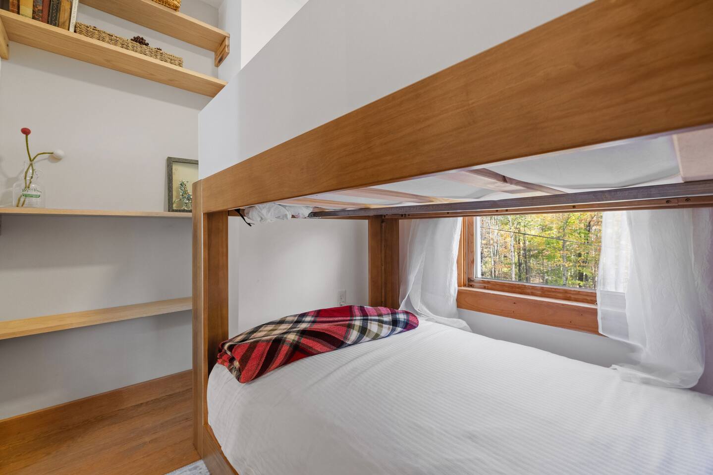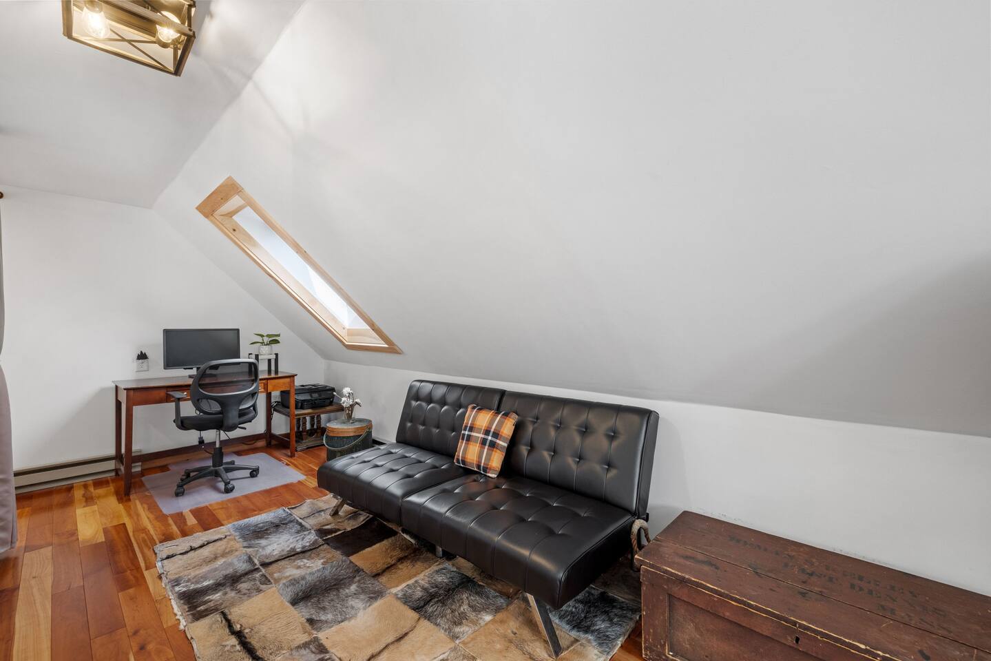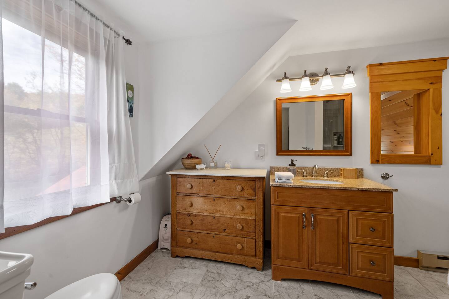 Discover a charming cottage nestled in a picturesque woodland with views of Black Mountain. The inviting vaulted room, adorned with a wood stove, serves as a cozy gathering spot. The pavilion and hot tub create a tranquil oasis, while the deck provides a serene escape with vistas of Black Mountain and the soothing sounds of babbling brooks. The master bedroom, a secluded loft, boasts its own full bath. Enjoy home-cooked meals in the fully equipped kitchen, perfect for dining with loved ones.